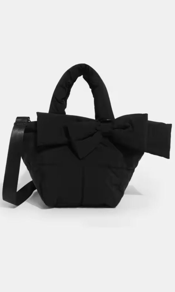 FRENCH BOW BLACK QUILTED TOTE BAG
